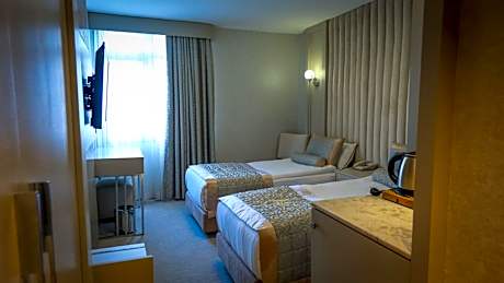Great care is taken to ensure guests experience comfort through top-notch services and amenities. Remain linked during your visit by utilizing the complimentary internet access available.Prior to your check-in date, you can arrange airport transportation services, guaranteeing a seamless and efficient experience for both arrival and departure. Services offered by taxi, car hire and shuttle at the hotel ensure effortless exploration of Bursa.The hotel offers complimentary parking for guests who arrive with their own mode of transport.Effortlessly plan your daily activities and travel requirements with concierge service, express check-in or check-out, luggage storage and safety deposit boxes provided by the front desk services.Securing top-notch tickets and reserving prime dining spots become effortless through assistance from the hotel's tours.For extended visits or whenever required, the dry cleaning service and laundry service ensures your preferred travel garments remain clean and accessible.During leisurely days and evenings, in-room amenities such as room service and daily housekeeping enable you to maximize your stay in the room. For minor or impromptu requirements, the convenience stores can promptly cater to them without the necessity of stepping out from the hotel. In limited designated zones, smoking is exclusively permitted.Crafted for coziness, every guestroom provides an array of features, guaranteeing a tranquil night's sleep while maintaining the level of comfort. For an elevated experience at hotel, select rooms are equipped with air conditioning to improve your stay.In select rooms, the hotel offers visitors access to a refrigerator. Begin your day on a delightful note with a scrumptious complimentary breakfast, consistently served at Kervansaray Bursa City Hotel.Concerned about your dining preferences? Fret not! Kervansaray Bursa City Hotel offers an assortment of culinary varieties featuring halal choices, catering to all tastes.