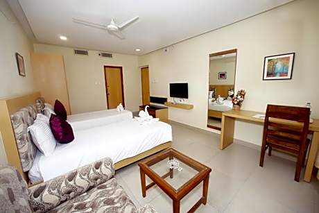 KGL Grand Hotel offers top-notch services and amenities, ensuring guests experience utmost comfort.Share your photos and respond to emails at your convenience, thanks to the free Wi-Fi internet access offered by hotel. Taxi offerings at the hotel enhance the ease of discovering Chennai. Visitors can take advantage of complimentary parking directly at the hotel.Reception services such as concierge service and luggage storage are available to accommodate your requirements. Traveling with minimal baggage is achievable at KGL Grand Hotel, as the hotel's dry cleaning service and laundry service ensures your garments stay fresh. Room amenities like 24-hour room service, room service and daily housekeeping contribute to making a perfect selection for your stay. Smoking is limited to specified smoking zones.Each accommodation at KGL Grand Hotel is thoughtfully created and adorned to provide visitors with a comfortable, home-like atmosphere. In certain rooms, the hotel offers blackout curtains and air conditioning for guest convenience and satisfaction.At KGL Grand Hotel, the uniquely tailored rooms provide a configuration choice resembling a balcony or terrace. In select rooms, guests at the hotel can enjoy top-notch in-room entertainment with television and cable TV available for their convenience.Rest assured, in a few chosen rooms, the presence of bottled water can be found. Maintain your cleanliness and comfort using a hair dryer and toiletries available in select guest restrooms. Embark on your holiday experience in the most ideal manner. Commence each morning of your visit with an on-site breakfast.Should you prefer not to venture out for a meal, the enticing culinary choices at hotel are always available for your satisfaction. No matter your specific dietary needs, rest assured that KGL Grand Hotel provides an array of halal choices to ensure your dining experience is nothing short of delightful. Experience an unforgettable evening with your fellow travelers just a short distance away, at hotel's bar.