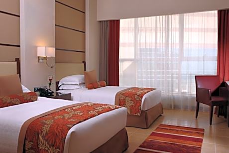 Our Guest Rooms with balcony. are 50 sqm and decorated in warm colors and feature modern furnishings with two twin beds, sitting area and writing desk, private bathroom with bathtub and walk-in shower. Enjoy your staycation with a beautiful Presidential Palace view.