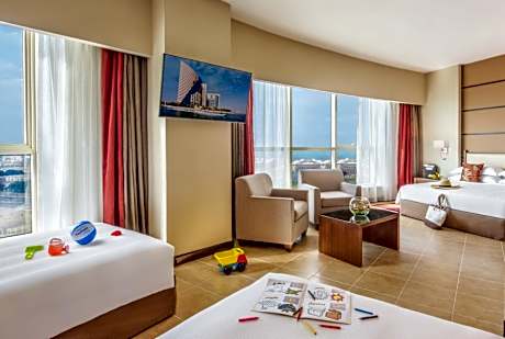 Khalidiya Palace Rayhaan by Rotana offers top-notch services and amenities, ensuring guests experience utmost comfort.Share your photos and respond to emails at your convenience, thanks to the free Wi-Fi internet access offered by resort. Should you require transportation to or from the airport, resort is able to organize it prior to your arrival date. Taxi and car hire offerings at the resort simplify arranging your excursions, explorations, and additional activities in Abu Dhabi. Visitors can take advantage of complimentary parking directly at the resort.Reception services such as express check-in or check-out, luggage storage and safety deposit boxes are available to accommodate your requirements. Securing top-notch tickets and snagging sought-after dining reservations become effortless, thanks to the resort's ticket service and tours. Traveling with minimal baggage is achievable at Khalidiya Palace Rayhaan by Rotana, as the resort's dry cleaning service and laundry service ensures your garments stay fresh.Room amenities like 24-hour room service, room service and daily housekeeping contribute to making a perfect selection for your stay.Smoking is limited to specified smoking zones.Each accommodation at Khalidiya Palace Rayhaan by Rotana is thoughtfully created and adorned to provide visitors with a comfortable, home-like atmosphere.In certain rooms, the resort offers linen service and blackout curtains for guest convenience and satisfaction. At Khalidiya Palace Rayhaan by Rotana, uniquely crafted rooms provide various layout choices, featuring spaces equipped with separate living room and balcony or terrace. In select rooms, guests at the resort can enjoy top-notch in-room entertainment with daily newspaper and television available for their convenience.Rest assured, in a few chosen rooms, you will find the convenience of bottled water, a coffee or tea maker, instant coffee, instant tea and mini bar at your disposal. Maintain your cleanliness and comfort using a hair dryer, toiletries and bathrobes available in select guest restrooms. Embark on your holiday experience in the most ideal manner. Commence each morning of your visit with an on-site breakfast.Experience the delight of a fresh morning by savoring excellent coffee at the cafe situated within resort.Should you prefer not to venture out for a meal, the enticing culinary choices at resort are always available for your satisfaction. No matter your specific dietary needs, rest assured that Khalidiya Palace Rayhaan by Rotana provides an array of halal choices to ensure your dining experience is nothing short of delightful. Experience an unforgettable evening with your fellow travelers just a short distance away, at resort's bar.Should you be particularly discerning in your dining choices, you will surely appreciate having access to the on-site BBQ facilities provided at this location.Khalidiya Palace Rayhaan by Rotana provides a superb assortment of leisure amenities for guests to enjoy. Make certain to allocate time for discovering the shoreline, easily reachable right from the resort. Unwind after a long day by stopping by massage, salon, steam room, spa and sauna to rejuvenate your senses.Each day at resort, immerse yourself in the invigorating waters of the pool, perfect for a rejuvenating plunge or a series of revitalizing laps. Bypass the formal attire and choose a laid-back mixed drink or brew at resort's waterside lounge. For individuals who don't want to skip their exercise routine, visiting the resort fitness center ensures you maintain your vitality and wellness.
