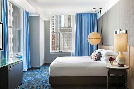 Just blocks away from the luxury shopping, dining and entertainment of Michigan Avenue’s Magnificent Mile, this boutique hotel is located in the heart of the Loop in downtown Chicago and offers a rooftop bar, complimentary evening wine hour and contemporary-styled guest rooms with free WiFi. Every room at Kimpton Gray Hotel includes a flat-screen TV, iPod docking station and a private bathroom with bathrobes and luxury Atelier Bloem bath products. Select rooms offer a separate living room and spa bath. Boleo offers breathtaking rooftop views alongside Latin-inspired cocktails and cuisine. Surrounded by the unique décor and marble furnishings of the lobby, guests can also grab a drink at the library-themed bar, Vol. 39. The hotel offers meeting and event spaces with large windows, high ceilings and modern business accommodations. There is also a state-of-the-art 24-hour fitness center. Gray Kimpton Hotel is located less than a mile away from Grant Park and the Art Institute. The hotel is a short 5-minute walk away from the Washington/Wells CTA train stop, offering easy access to the city’s top attractions.