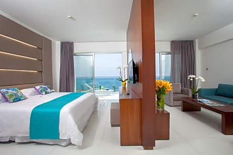 Offering an outdoor and indoor pool, and a selection of restaurants and bars, the beachfront King Evelthon Beach Hotel & Resort in Paphos Town, features air-conditioned accommodations with tasteful decoration. A spa center and waterpark facilities are included. Fitted with parquet floors, all rooms and suites of King Evelthon open to a furnished balcony or a patio. Each has a flat-screen, satellite TV, a mini fridge and a private bathroom with a hairdryer and free toiletries. Most units come with partial or direct views of the Mediterranean Sea or a seating area. Guests may enjoy different cuisines at the on-site restaurants, as well as cocktails and refreshing beverages at the bar, while kids' menu is also prepared. A beach bar is available for drinks by the sea. Spa treatments and therapies can be provided at the spa and wellness center, while fitness facilities, tennis and mini football courts are offered for those who wish to keep fit. The younger guests may entertain themselves at the kids' club or at the property’s waterpark, upon charge. Free WiFi is featured in the lobby. The popular site of Tombs of the Kings is at a distance of 1.1 mi and Panagia Chryssopolitissa Church is 1.2 mi away. This resort is 6.8 mi from Paphos International Airport. Please be informed that the Waterpark is open from May to October. Please contact directly the hotel for any requests/queries via email: [email protected]