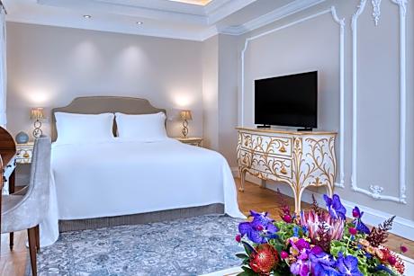 Featuring a neoclassical facade, King George features a prime location in the historic Syntagma Square, between the Parliament and the fashionable Voukourestiou Street. A signature restaurant, fitness center and meeting facilities are included. Luxuriously decorated with hand-picked items and chandeliers, all rooms open to a balcony or window facing the Acropolis or the tranquil inner courtyard. Bathrobes, slippers and free toiletries stock the bathroom. Enjoying panoramic views of the Athens City from the seventh floor, Tudor Hall Restaurant serves gourmet and Greek dishes. Guests can relax with a drink or cocktail from the on-site bar. King George, a Luxury Collection Hotel, Athens lies within a short walk from Acropolis and the old area of Plaka. Various bars can be found at the cosmopolitan district of Kolonaki, 15 minutes’ away on foot. Free Wi-Fi is available in the public areas.