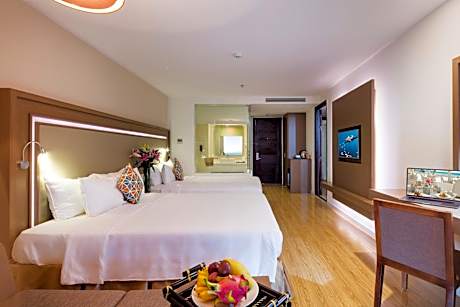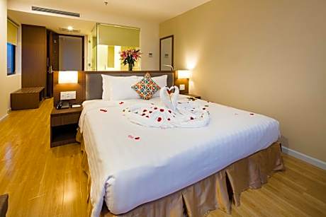 Experience an abundance of unparalleled facilities and features at King Town Grand Hotel & Wedding Center.Maintain seamless communication using the complimentary Wi-Fi at hotel.Effortlessly arrange transportation to and from the airport using the hotel's airport transfer services.Discovering Nha Trang becomes even more accessible, thanks to the taxi amenities provided at the hotel. For visitors traveling by automobile, complimentary parking is available.During your stay at this fantastic hotel, the attentive front desk personnel can provide you with a range of amenities such as concierge service, express check-in or check-out, luggage storage and safety deposit boxes. In search of city's top entertainment, seek assistance at the hotel's ticket service and tours for reservations.Craving relaxation? Make the most of your stay at the King Town Grand Hotel & Wedding Center with convenient amenities like room service and daily housekeeping at your disposal.Kindly note that smoking is prohibited in the hotel to ensure fresher air for all visitors.For visitors wishing to smoke, designated smoking zones can be found.At King Town Grand Hotel & Wedding Center, every guestroom is provided with convenient amenities and fittings to ensure a comfortable stay. Enhance your experience at hotel with the knowledge that certain rooms are equipped with linen service, blackout curtains and air conditioning for your convenience. A few accommodations within King Town Grand Hotel & Wedding Center offer unique design elements such as a balcony or terrace. Certain rooms boast in-room amusement features such as television and cable TV, offering guests an enjoyable stay.In select rooms within the hotel, a refrigerator, bottled water, instant coffee, instant tea and mini bar is available to cater to your requirements when desired.It is worth noting that certain guest bathrooms feature a hair dryer, toiletries and bathrobes for your convenience. Begin your day carefree at King Town Grand Hotel & Wedding Center, as complimentary breakfast is offered for your convenience. During your stay at hotel, an array of engaging activities and amenities guarantees a delightful experience.During your stay, make the most of the unparalleled entry to hotel's secluded shoreline for an unforgettable experience.Conclude your holiday perfectly with a visit to massage, spa and sauna on your final days. Be sure to drop by the pool at hotel at least once during your stay.Discover the fitness amenities at hotel to maintain your health and strength during your getaway.