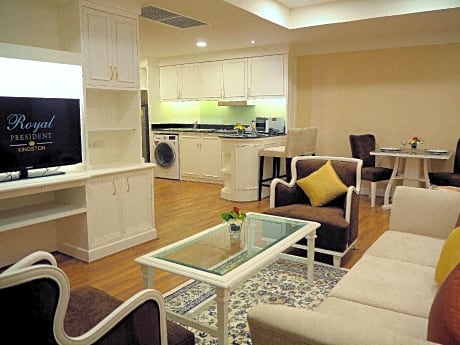 Kingston Suites Hotel Bangkok provides flawless service and all the necessary facilities for visitors.Stay connected with your associates, as complimentary Wi-Fi is available during your entire visit. The hotel offers shuttle amenities to assist you in discovering your desired offerings in Bangkok. When arriving by car, you'll be grateful for the on-site complimentary parking at hotel. The hotel offers reception amenities including concierge service, luggage storage and safety deposit boxes to ensure a comfortable stay for guests.Whether it's an extended stay or simply needing fresh attire, dry cleaning service and laundry service provided by hotel ensures your cherished travel garments stay spotless and accessible.Your stay will be comfortable with the presence of room service and daily housekeeping as an in-room amenity for your relaxation and enjoyment. Need something at the last minute? The convenience stores has you covered, ensuring your requirements are met without any inconvenience.Smoking is permitted solely in the specified smoking zones allocated by hotel. In order to ensure the utmost level of relaxation, the guestrooms feature an inviting design and are equipped with all basic necessities, creating a delightful stay experience. To ensure a pleasant stay, a selection of rooms at hotel come furnished with linen service, blackout curtains and air conditioning, all designed with your ease in mind.Several chosen accommodations at Kingston Suites Hotel Bangkok have a separate living room incorporated into the room design.In select rooms, visitors can enjoy a touch of amusement with the availability of television and cable TV for their entertainment needs.Within specific rooms, a refrigerator and mini bar is conveniently available for your use.Understanding the significance of bathroom facilities in enhancing visitor contentment, hotel offers a hair dryer, toiletries and bathrobes within a few chosen chambers. Start your day stress-free at Kingston Suites Hotel Bangkok as breakfast is made available for you on the premises. Various excellent meal offerings at hotel ensure that enticing and easily accessible options are constantly available.