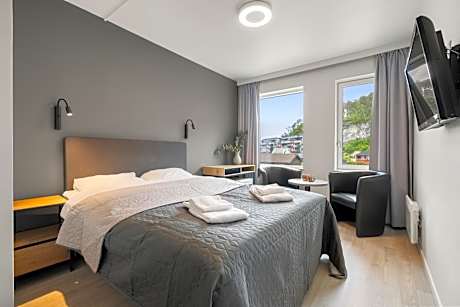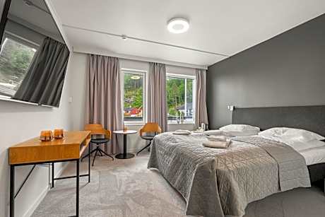 This B&B hotel is located close to the center of Florø, Norway’s westernmost town. Guests enjoy free Wi-Fi access in all rooms. Kinn Hotell Florø offers guest rooms with tiled bathrooms. Each room has a TV, a work desk and a seating area. In the basement of Kinn Hotell Florø, guests have access to billiard table as well as laundry facilities. Drinks can be enjoyed in the lobby bar next to the reception on the ground floor. The nearby Storåsen and Brandsøyåsen hills offer panoramic views of the natural surroundings, and the Kinn Hotell Florø also organizes guided tours to Florø’s islands and coastline.
