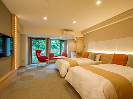 Kinugawa Onsen Hotel offers top-notch services and amenities, ensuring guests experience utmost comfort. Share your photos and respond to emails at your convenience, thanks to the free Wi-Fi internet access offered by ryokan.Visitors can take advantage of complimentary parking directly at the ryokan. Reception services such as luggage storage and safety deposit boxes are available to accommodate your requirements.Should you desire access to the top entertainment in the city, assistance can be provided by the ryokan's ticket service.Relax and feel the warmth in the ryokan's inviting lobby, featuring an enchanting on-site fireplace.Room amenities feature daily housekeeping, allowing you to unwind and make the most of your visit.The ryokan maintains a completely smoke-free zone, providing a breathable atmosphere.Smoking is limited to specified smoking zones. Each accommodation at Kinugawa Onsen Hotel is thoughtfully created and adorned to provide visitors with a comfortable, home-like atmosphere.In select rooms of the ryokan, guests can enjoy the advantage of having air conditioning available for their convenience.In select rooms, guests can enjoy a touch of amusement with the availability of television for their entertainment. Rest assured, in a few chosen rooms, you will find the convenience of a refrigerator and bottled water at your disposal. Maintain your cleanliness and comfort using a hair dryer and toiletries available in select guest restrooms. Begin your holiday on a high note. At Kinugawa Onsen Hotel, your mornings are greeted with a delightful, free breakfast. Should you prefer not to venture out for a meal, the enticing culinary choices at ryokan are always available for your satisfaction.Experience an unforgettable evening with your fellow travelers just a short distance away, at ryokan's karaoke rooms. Throughout the day and evening, grab a bite to eat from ryokan's self-service vending machines whenever you please.Kinugawa Onsen Hotel provides a superb assortment of leisure amenities for guests to enjoy.Unwind after your day by exploring the sauna and find warmth and relaxation.