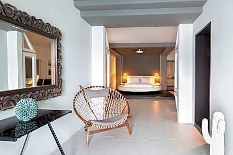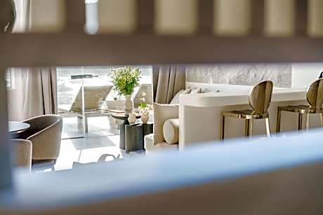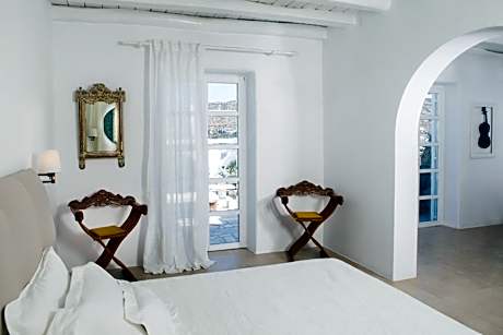 Kivotos Mykonos - Preferred Hotels & Resorts is located on a private beach on the magnificent bay of Ornos, just a 5-minute drive from Mykonos town, port and airport. It features 2 swimming pools, extensive spa facilities and fitness center. Each of its villas and suites has been individually decorated by famous artists and local craftsmen. Welcome drink is offered upon arrival. The a la carte Le Pirate serves Mediterranean cuisine and local specialties overlooking the bay. La Meduse gourmet restaurant serves Greek fusion cuisine and fresh seafood with views over the moonlit Ornos Bay.