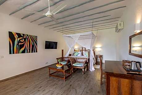 Set in the Kiwengwa Beach district of Kiwengwa, Kiwengwa Beach Resort is 6.2 mi from Kichwele Forest Reserve and a 3-minute walk from Obama Beach Club Zanzibar. Offering a restaurant, the property also has an outdoor swimming pool. The resort has a garden and provides a terrace. At the resort, every room has a wardrobe. Kiwengwa Beach Resort offers certain units that have sea views, and the rooms are fitted with a private bathroom with a bath. At the accommodations all rooms are fitted with air conditioning and a flat-screen TV. A continental or buffet breakfast can be enjoyed at the property. Kiwengwa Beach Resort offers 5-star accommodations with a hot tub. Guests at the resort will be able to enjoy activities in and around Kiwengwa, like cycling. Staff speak Arabic, English and Italian at the reception. WiFi is available at a charge and free private parking is available. The Zanzibar Airport is 28 mi away.