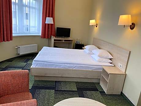 The Kolonna Hotel Rezekne is a 3-star hotel in the center of the eastern Latvian city of Rezekne, directly on the banks of the Rezekne River. The restored exterior of the hotel reflects its 1930s origin. All rooms have private facilities, telephone with local and international access, TV with international programs, as well as Wi-Fi. The Restaurant Rozalija serves Latvian cuisine. The bar offers cocktails, snacks, coffee, ice cream and desserts. The train station and bus station are 2953 feet away. There is a picturesque lake 984 feet away.