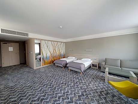 Kolumna Park is located in Dobroń, close to Pabianice, in a quiet spot over the Grabia River. Hotel Kolumna Park offers 71 rooms of a high standard. All rooms are cozy and comfortable. Its rooms offer tea/coffee facilities and free Wi-Fi. Parking is free on site. The rooms at Kolumna Park Hotel feature a mini-bar and a safety deposit box. Guests can also watch satellite TV. A breakfast buffet is served each morning. Lovers of regional flavors are invited to our a'la carte restaurant Bagatela. In addition, we encourage our guests to take advantage of the late night offer in the Single Malt bar. " During their stay, guests can relax in the hotel garden or organize a barbecue or use the Finnish sauna. Convenient location away from the hustle and bustle of the city, at the exit of the Pabianice S-14 bypass allows for easy and fast (about 10 minutes) access to Łódź (Port Łódź)