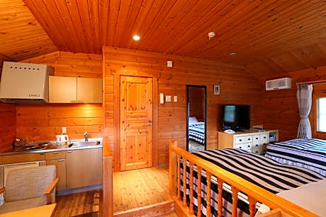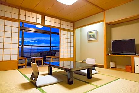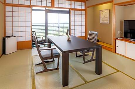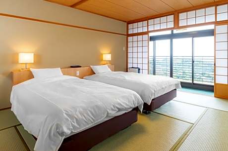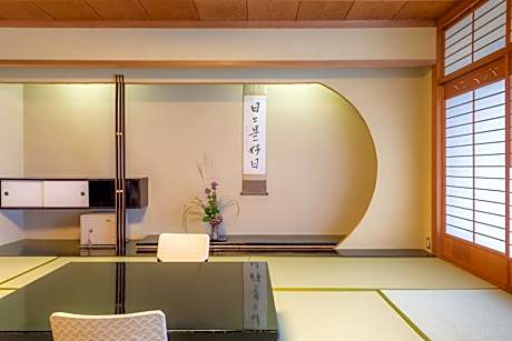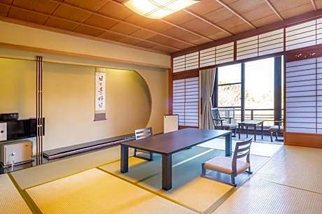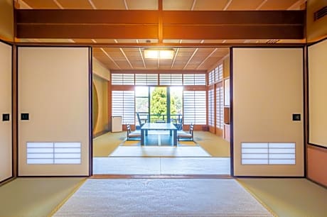 The quadruple room includes a private bathroom, well-fitted with a bath, a shower, a bidet, a hairdryer and slippers. The spacious air-conditioned quadruple room features a flat-screen TV, tatami, a mini-bar, a seating area as well as garden views. The unit has 4 futons.