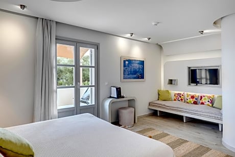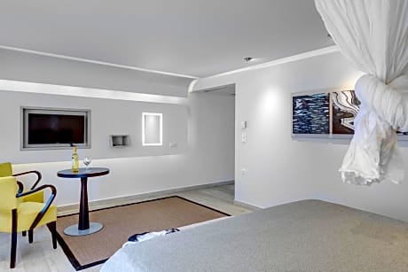 This boutique, adults-only Kouros Art Hotel is located at the foot of a small hill 1148 feet from Stelida Beach and 0.6 mi from Agios Prokopios Beach. It features a pool and a large hot tub. Its air-conditioned accommodations comes with balcony and Coco-mat bedding. Featuring white hues, all accommodations types at the Cycladic-style Kouros have an LCD TV with satellite channels . Each has a fridge and a modern bathroom with hairdryer. Some units feature a living area, and they all enjoy either sea view ,or town view , or mountain view or garden views depending their position on the premises! Buffet breakfast is served in the dining area. The bar - restaurant of the Kouros Art Hotel is the ideal corner, where privacy, environment and cuisine (lunch - dinner) melt in a nice view to the swimming pool . Discover traditional cuisine, with its wide variety of high quality ingredients and savor delicious cocktails while enjoying the city view. Massage and beauty treatments can be provided to guests upon request. Specially designed areas for pilates and yoga are also available. Free Wi-Fi is available in all areas. Naxos Town and Port are 1.9 mi away, while small villages, such as Vivlos, lies within 5 mi. Staff can help with car, bike or bicycle rental, as well as with excursions and small cruises.
