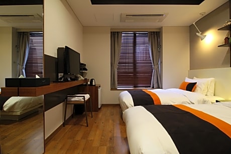 At KT&G Sangsangmadang Chuncheon Stay (Korea Quality), exceptional service and top-notch amenities create a memorable experience for guests. Complimentary internet access is available in the hotel to ensure you stay connected during your visit. Amenities at taxi offered by KT&G Sangsangmadang Chuncheon Stay (Korea Quality) simplify the organization of your excursions, tourist activities, and other adventures in Chuncheon-si. Complimentary parking is available for guests.Continuously receive the support you require through front desk amenities such as concierge service, luggage storage and safety deposit boxes.At the hotel, utilize the convenient laundromat to maintain your preferred travel attire fresh, allowing you to pack lighter.Desire to unwind? Make the most of your visit at KT&G Sangsangmadang Chuncheon Stay (Korea Quality) with accessible amenities such as daily housekeeping. Due to health concerns, smoking is strictly prohibited within the entire premises of hotel. For the health and well-being of all guests and staff, smoking is restricted exclusively to assigned zones.Accommodations come equipped with all the conveniences required for a restful night's slumber.A selection of rooms feature linen service, blackout curtains and air conditioning to ensure your comfort and convenience. A few chosen rooms are equipped with television and cable TV to ensure guest amusement. In certain chosen rooms, a refrigerator is conveniently available for your use.In the hotel, certain guest bathrooms come equipped with essential bathroom amenities, such as a hair dryer, toiletries and bathrobes, ensuring a comfortable stay for guests. A delightful breakfast is the perfect way to begin your day, and at KT&G Sangsangmadang Chuncheon Stay (Korea Quality), you can always indulge in a scrumptious meal on-site.Allow your journey to be free from the pangs of hunger! On-site eateries offer delicious and accessible meal choices. At KT&G Sangsangmadang Chuncheon Stay (Korea Quality), affordable refreshments are available 24/7 through the convenient vending machines on-site. Are you inclined to prepare your own dishes? You will surely appreciate having the on-site shared kitchen available.At KT&G Sangsangmadang Chuncheon Stay (Korea Quality), guests can take pleasure in the delightful recreational amenities provided for their entertainment.At the hotel fitness center, you have the option to engage in your daily exercise routine or simply alleviate your jet lag by breaking a sweat.
