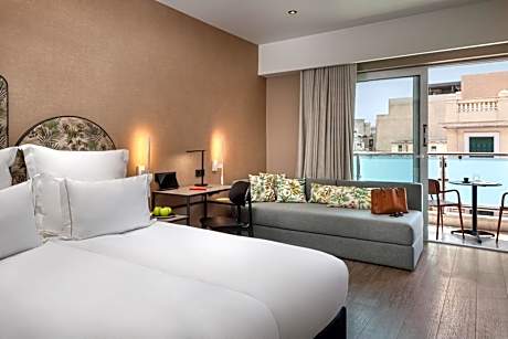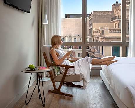 This air-conditioned family room is consisted of of a flat-screen TV with satellite channels, a private bathroom as well as a terrace with city views.