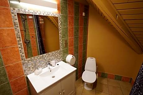 This double room's special feature is the sauna. The double room includes a private bathroom equipped with a shower. The double room provides a tea and coffee maker, parquet floors, heating, a flat-screen TV, as well as garden views. The unit offers 1 bed.