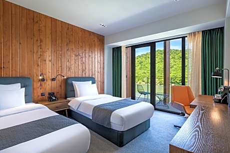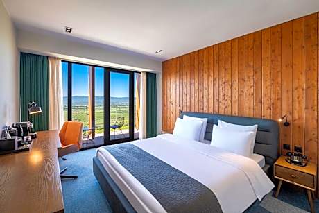 Featuring a full spa and wellness center, this hotel is nestled between the Kvareli Lake and the Alazany Valley. Kvareli Lake Resort is located in Kvareli. All accommodations at Kvareli Lake Resort comes complete with satellite TV, air conditioning and a mini-bar. Each room has a private bathroom providing free toiletries, slippers and a hairdryer. Guests are welcome to dine in the hotel restaurant and half-board options are available. Additonally, there is a bar on site as well as barbecue facilities and vending machines. Guests can relax in the outdoor pool or make use of the fitness center. Alternatively, hiking and fishing are popular in the area. Guests can borrow bikes from Kvareli Lake Resort free of charge.