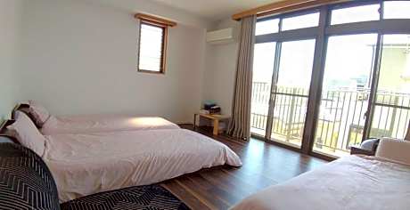 The quadruple room offers air conditioning, a tea and coffee maker, as well as a shared bathroom boasting a shower and a bidet. The quadruple room has city views. The unit has 3 beds and 1 futon.