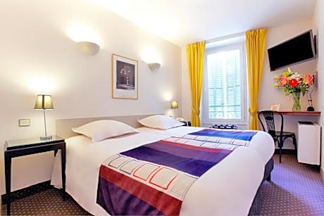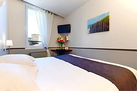 Kyriad Nîmes Center hotel is in the heart of Nîmes, integrated in the oldest district of the city close to the Roman arena, the Maison Carrée, museums and shopping streets. Free Wi-Fi is provided. Air conditioning and double glazing feature in all rooms equipped with private bathroom with hairdryer. They also have a flat-screen TV and a welcome tray with tea and coffee making facilities and biscuits. Breakfast is served each morning and can be enjoyed in the comfort of your room. The front desk is open 24 hours a day and on-site, secure parking is available, upon reservation and subject to availability.