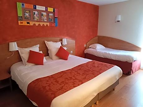 Located a 10-minute drive from the center of Nîmes, this 3-star hotel is ideally located 1.2 mi from the exit 25 of the A9 motorway. You can browse the free 20 mbps WiFi or relax in the outdoor living areas. Each room at Kyriad Nîmes Ouest - Sortie Autoroute Nîmes Ouest A9 A54 - Parking gratuit - Terrasse - Jardin - Plateau repas - Petit déjeuner dès 5h30 - Animaux bienvenue has tea and coffee-making facilities and a flat-screen TV with international channels, including Canal. Decorated in Mediterranean tones, the rooms also have an private bathroom with free toiletries. A buffet breakfast is served every morning in the breakfast room or in the garden. You can also relax in the lounge bar with an aperitif before dining in the nearby restaurants. Free private parking is available on site and Nîmes Airport is a 15-minute drive away. You may also choose to play golf at Vacquerolles or Golf Nîmes Campagne, both a 20-minute drive from the hotel. This Kyriad hotel also has a 24-hour reception.