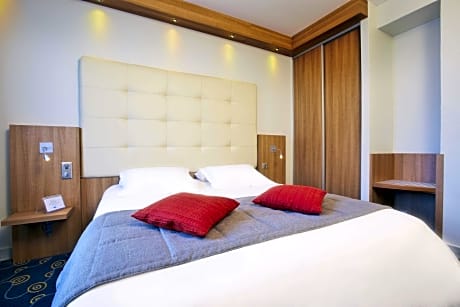 Located in the center of Tours, the Kyriad Hotel Tours Center offers quick and easy access to the Vinci congress center and the Tours Center train station. There is an underground parking available on site for guests to use for an additional fee. The Vallée du Cher Stadium is 2.4 mi away. Kyriad Tours Center has double, twin and triple rooms all with air conditioning and baths. Two rooms have wheelchair access. The rooms also provide a TV with Canal+ or CanalSat channels and free WiFi access. The hotel has a elevator. Please note that for reservations of more than 10 rooms there is a 50% prepayment upon booking and for free cancellation it is on D-30. You can relax with a refreshing drink in the hotel's bar. Restaurants, theaters, cinema, night clubs, swimming pool and ice rink are all nearby. Free public parking is possible at a location nearby.
