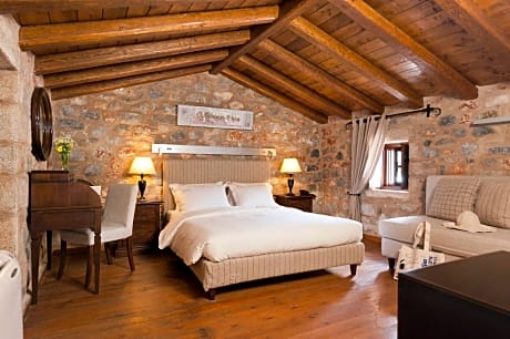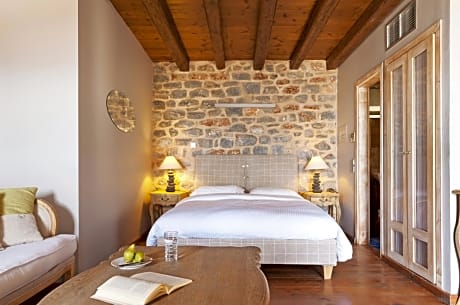 Dating back to 1870, this elegantly restored property enjoys a countryside setting in Mani. It offers a historic atmosphere, Creative Greek and International cuisine and country-chic rooms with antique furniture. The vintage-style guest rooms are fitted with custom-made anatomic bedding and have Apivita toiletries. A Greek breakfast is served on a wooden deck right on the sea. Creative Greek and International cuisine, prepared by the hotel’s chef are served at Kyrimai’s atmospheric restaurant. The Kyrimai Hotel lies a few miles from the southernmost point of the Tainaro peninsula, where the Ionian Sea meets the Aegean. This example of period architecture is a member of the Historic Hotels of Europe.