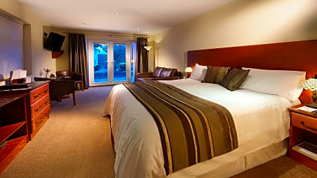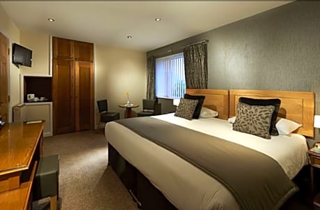 These double rooms are ideal for single occupancy, but can comfortably accommodate two adults on short stays. They are located in a separate block to the hotel and each room is accessible by an external metal staircase with 12 steps. They have been recently refurbished with Double Beds (135 x 75 in or 4ft6 x 6ft 3inches), new walk-in showers & air conditioning. Please also note that their views are limited or poor.