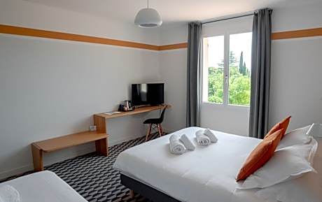Room for 3 people (82 ft²). It includes 1 double bed and 1 single bed. Late arrival is paying. Pets not allowed.