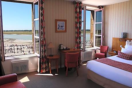 Stay in a Historic Hotel at the Heart of Mont Saint-Michel. Hôtel La Mère Poulard, located in the heart of Mont Saint-Michel, has preserved the authentic charm of traditional inns from the past. For over a century, this iconic establishment has welcomed pilgrims and travelers from around the world in a setting rich in history. The hotel consists of three historic houses, each offering a unique atmosphere: The Historic Inn, where the story of La Mère Poulard began. La Maison Rouge, with its adjoining garden, providing a peaceful setting. L’Ermitage, also known as Maison d’Annette, the final residence of the famous cook. The rooms, with their classic style, offer breathtaking views of the bay, the Abbey, or the medieval town. They are equipped with a flat-screen TV, free Wi-Fi, and a private bathroom with a bathtub. La Mère Poulard’s renowned restaurant invites you to savor its traditional recipes, including the famous omelet, prepared using Annette Poulard’s unique expertize since 1888. Take advantage of your stay to explore Mont Saint-Michel and its picturesque streets, hike the surrounding trails, or discover the region by bike. Avranches is a 23-minute drive away, and Saint-Malo is 45 minutes away.