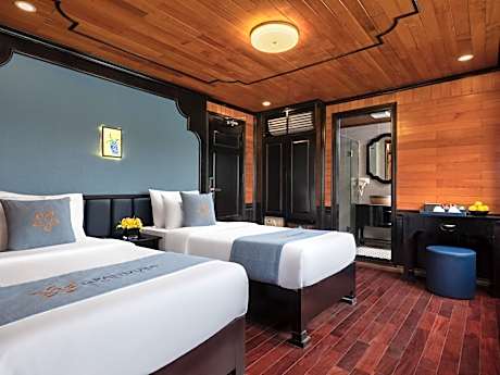 Located a 5-minute walk from Tuan Chau Beach, La Pandora Boutique Cruises offers 4-star accommodations in Ha Long and has a terrace, a restaurant and a bar. The property is around a few steps from Tuan Chau Harbor, 7.8 miles from Ha Long Queen Cable Car and 11 miles from Vincom Plaza Ha Long. The property has room service, a 24-hour front desk and currency exchange for guests. All rooms comes with air conditioning, a fridge, an oven, an electric tea pot, a shower, free toiletries and a desk. All rooms include a private bathroom with a hairdryer, while selected rooms also offer a balcony and others also have sea views. All guest rooms feature a safety deposit box. Guests at the cruise will be able to enjoy activities in and around Ha Long, like fishing and cycling. Quang Ninh Museum is 12 miles from La Pandora Boutique Cruises, while Vincom Plaza Ngo Quyen is 26 miles away. Cat Bi International Airport is 25 miles from the property, and the property offers a paid airport shuttle service.