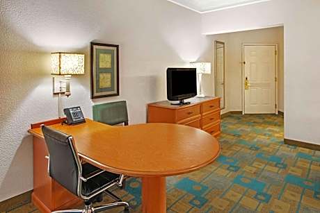 Free breakfast is provided each morning at this Albuquerque hotel and a business center is onsite. Rooms feature free Wi-Fi. The Albuquerque Zoo is 5 mi away. A flat-screen cable TV is featured in all rooms at the La Quinta Inn and Suites Albuquerque West. Coffee-making facilities and free toiletries are also provided. Waffles, hot and cold cereal, baked goods, and fresh fruit are all included in the Albuquerque West La Quinta Inn and Suites daily breakfast. Coffee and juice are also offered. An outdoor swimming pool and hot tub are available for guest relaxation. A 24-reception is also included. Old Town Albuquerque is 3.1 mi from the hotel. Albuquerque Botanical Gardens is 2.7 mi away.