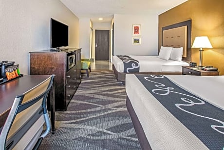 This hotel in Irving, Texas is only 4 miles from The University of Dallas. A daily breakfast buffet and airport shuttle service to DFW Airport are included. Free Wi-Fi access and a flat-screen TV with cable channels are offered in each guest room at La Quinta Inn & Suites Dallas Las Colinas. A microwave and refrigerator are available for preparing in-room refreshments. A seasonal outdoor pool is available for guests to enjoy a refreshing swim at Dallas Las Colinas La Quinta. Exercise equipment and a mounted TV are provided in the hotel’s on-site fitness center. A business center is accessible for guests to browse the internet or print travel documents. Dallas city center is 15 miles from the hotel. Dallas Convention Center and American Airlines Center are each within 20 minutes’ drive.