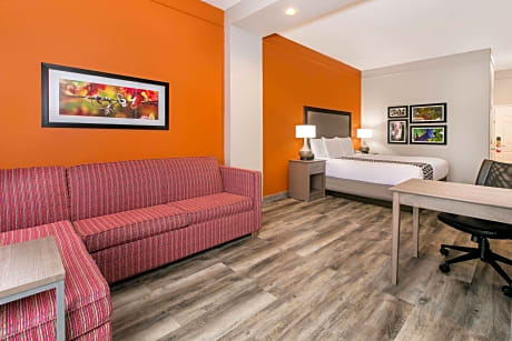 Daily breakfast and free Wi-Fi are provided at this Fredericksburg property. A fridge and a microwave are included in each room and a fitness center is on site. Texas Tech University is 2 miles away. A flat-screen cable TV is featured in rooms at La Quinta Inn and Suites Fredericksburg. A coffee maker is also provided in each air-conditioned guest room. Cereal, biscuits and gravy are available for breakfast at Fredericksburg La Quinta Inn and Suites. Waffles, fresh fruit and muffins are also available. Guests can enjoy unlimited coffee and juice. An outdoor swimming pool is featured at La Quinta – Fredericksburg. A guest laundromat and fax and photocopying facilities are available on site. Northwoods Shopping Center is a 5-minute drive away. Lady Bird Johnson Golf Course is 5 miles from La Quinta Inn and Suites Fredericksburg.