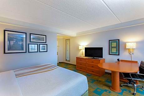 Located a 15 minutes' drive from the beach, La Quinta Inn & Suites Jacksonville Butler Boulevard features an outdoor pool and a daily continental breakfast. Guests will be 8 mi from vibrant nightlife and dining at Jacksonville Landing. All guest rooms feature a flat-screen cable TV, alarm clock, and hairdryer. Select rooms at this Jacksonville La Quinta Inn and Suites include a microwave and small refrigerator. Guests can work up a sweat at the convenient on-site fitness center. La Quinta Inn and Suites Jacksonville offers laundry facilities and meeting facilities as well. This hotel is 16 mi from Jacksonville Zoological Gardens. The Museum of Science and History is 7 mi away.