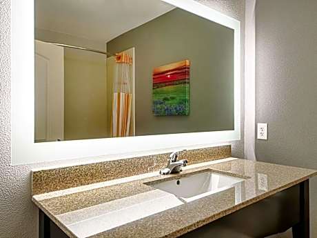 A daily breakfast buffet and free Wi-Fi are provided at this McKinney property. A cable TV is included in each room and an outdoor pool is located on site. Allen Convention Center is 11 miles away. A coffee maker is included in each room at La Quinta Inn and Suites McKinney. A work desk is also provided. Select rooms offer a microwave and a refrigerator. Fresh fruit, sausage and eggs are some of the breakfast options at McKinney La Quinta. Waffles, bacon, biscuits and pastries are also offered. Guests can enjoy unlimited coffee and juice. A fitness center and a guest launderette are located at La Quinta Inn – McKinney. This pet-friendly property offers an air-conditioned environment for guest comfort. Chestnut Square Historic Village and Heard Natural Science Museum are both within 7 miles away. McKinney city center is 12 minutes’ drive from La Quinta Inn and Suites McKinney.