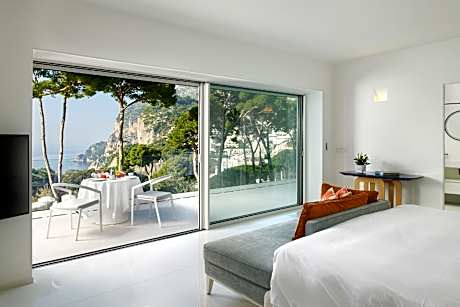 Set on the Island of Capri, this 5-star DELUXE hotel features 2 summer outdoor pools with panoramic views of the Mediterranean Sea. All elegant rooms include satellite TV, free Wi-Fi and air conditioning. Hotel Scalinatella is just 1312 feet from Capri's Piazzetta square, famous for its fashionable street cafés. Boats to mainland Italy leave from Marina Grande harbor, 0.6 mi away. Rooms at the Scalinatella have Capri-style décor and cool tiled floors. Some rooms feature a separate lounge and a furnished terrace with sea views. A continental breakfast is served daily. The restaurant opens for lunch, serving island specialties prepared from local seasonal produce.
