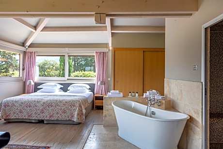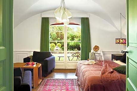 The spacious double room provides air conditioning, soundproof walls, a terrace with garden views as well as a private bathroom featuring a bath. The unit offers 1 bed.