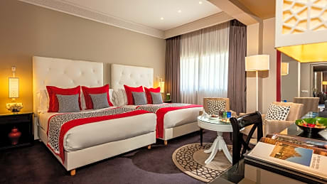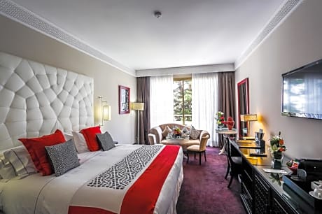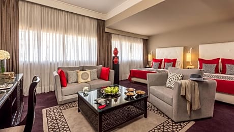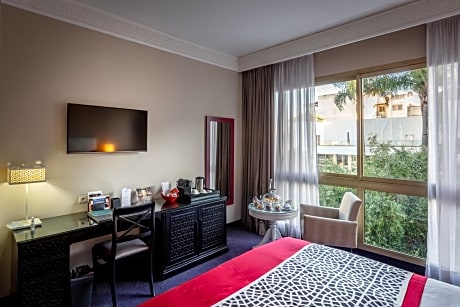 Located in Rabat city center, this prestigious hotel is built in a characteristic Moorish-Andalusian style. It offers luxury air-conditioned rooms, an outdoor swimming pool and a fully equipped wellness center. Rooms at the La Tour Hassan Palace combine traditional materials with modern comforts. They feature spacious bathrooms with bathtub, hairdryer and bathrobes. They are also equipped with satellite TV and Wi-Fi access. La Tour Hassan Palace has no less than 3 restaurants serving gourmet and traditional Moroccan cuisine. You can also relax on the outdoor terrace, or have a glass of champagne at the Piano Bar de la Tour. The VIP lounge bar is also at your disposal for clubbing. By the pool, you will find the wellness center offering gymnasium, hammam, sauna, hot tub, as well as beauty center where to enjoy massages, beauty treatment and hairdressing center. All of the services supervised by professionals. La Tour Hassan Palace is just 15 minutes from a 440-hectare forest where Robert Trent Jones designed one of the most beautiful golf course : the Dar Es Salem Royal Golf.