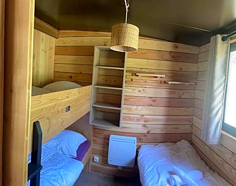 Featuring a private entrance, this mobile home also is consisted of of 1 living room, 2 separate bedrooms and 1 bathroom with a shower. Guests will find a stovetop, a refrigerator, kitchenware and an oven in the well-equipped kitchenette. The mobile home also has a barbecue. The mobile home offers a tea and coffee maker, a seating area, a dining area as well as a terrace with lake views. The unit offers 3 beds.