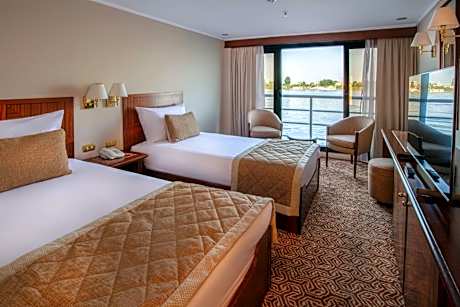Jaz Celebrity Nile Cruise - Every Saturday from Luxor for 07 & 04 Nights - Every Wednesday From Aswan for 03 Nights features an outdoor swimming pool, terrace, a restaurant and bar in Luxor. This 5-star cruise has air-conditioned rooms with a private bathroom. Guests can have a drink at the snack bar. Guest rooms include a safety deposit box. The breakfast offers buffet, continental or Full English/Irish options. Speaking Arabic and English at the 24-hour front desk, staff will be happy to provide guests with practical guidance on the area. Luxor Train Station is 1.2 miles from the cruise, while Luxor Museum is 2.3 miles away. Luxor International Airport is 7.5 miles from the property.