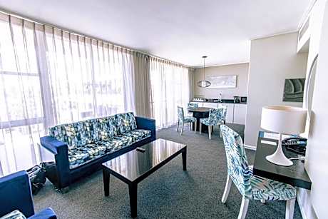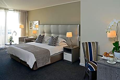 Overlooking Table Mountain and Robben Island, Lagoon Beach Hotel offers direct beach access in Cape Town’s Milnerton suburb. It offers a beach-side and roof-deck pool and a scheduled complimentary shuttle service to the V&A Waterfront and Century City. Free WiFi is available throughout the property. The contemporary rooms at Lagoon Beach Hotel boast stylish décor and feature balconies with views of the city, ocean or Table Mountain. They come equipped with a satellite TV, mini-bar, tea-and-coffee-making facilities and private bathrooms. Some rooms have a spacious seating area and air conditioning, and some offer a view of the courtyard, garden or sea. Hotel Lagoon Beach has 3 on-site restaurants, catering for all tastes. There is Au Bleu, Land and Sea, a pool-side bar La Mizu, Coastal Japanese and Wang Thai restaurant. All 3 offer views of the Atlantic Ocean and Robben Island. Guests can relax by the outdoor pool, use the 24-hour fitness room or enjoy a range of relaxation treatments at the hotel's Camelot Spa, including massages, facials and body wraps. The Beach Hotel is located 12 mi from the Cape Town International Airport and a 20-minute drive from Table Mountain. It also provides secure underground car parking. An airport shuttle can be arranged at a charge.