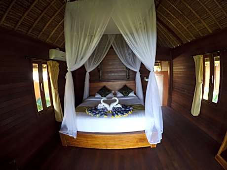 Overlooking Ceningan island with beautiful Ocean View and seaweed farmer, Laguna Reef Huts offers quaint thatched accommodations with free Wi-Fi access. Relaxing massages can be arranged upon request. Guests who drive enjoy free parking privileges. The air conditioned bungalows are equipped with a terrace and a refrigerator. Semi-open private bathroom is fitted with a shower, bathrobes and free toiletries. Guests enjoy sweeping sea views. Guests can enjoy dining on Indonesian and Western specialties at Laguna Restaurant. Staff can assist with car hire, shuttle services and airport transfer at additional charges. Laundry, dry cleaning and babysitting services are also offered for a fee. An array of activities can be enjoyed on site or in the surroundings, including fishing, diving and snorkeling. Laguna Reef Huts is a 10-minute drive away from Mushroom Bay, and a 15-minute drive from Beach Club at Sandy Bay and Dream Beach.