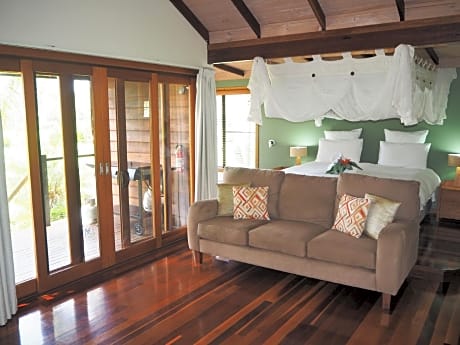 Lake Weyba Cottages Noosa is a recently renovated bed and breakfast in Peregian Beach where guests can make the most of its free bikes and garden. Each accommodation at the 4-star bed and breakfast has lake views, and guests can enjoy access to a hot tub and a wellness packages. The bed and breakfast features rooms with air conditioning, free private parking, and free Wifi. All units come with a seating area, a flat-screen TV, and a private bathroom with bathrobes, walk-in shower, hot tub, and bath. Rooms have a kettle, while some rooms also boast a fully equipped kitchen with a dishwasher and an oven. At the bed and breakfast, units have bed linen and towels. For visitors looking to embark on day trips to nearby landmarks, the bed and breakfast offers a selection of packed lunches. Guests at Lake Weyba Cottages Noosa will be able to enjoy activities in and around Peregian Beach, like cycling, fishing, and canoeing. The bed and breakfast has a picnic area where you can spend the day outdoors. Noosa National Park is 13 miles from the accommodation, while SEA LIFE Sunshine Coast Aquarium is 20 miles from the property. Sunshine Coast Airport is 9.3 miles away.