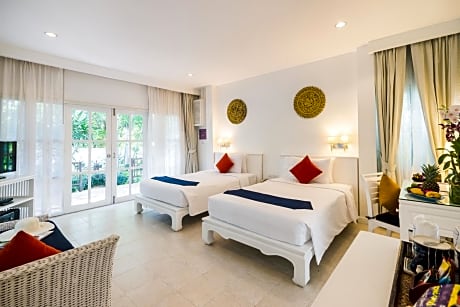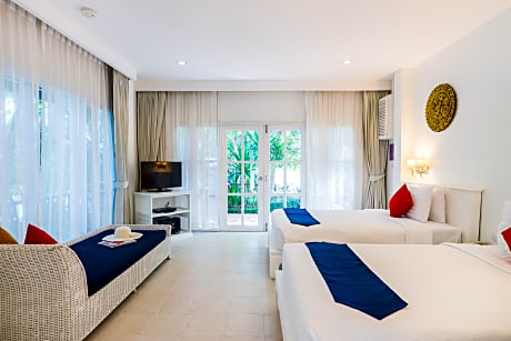 Great care is taken to ensure guests experience comfort through top-notch services and amenities.Remain linked during your visit by utilizing the complimentary internet access available. Prior to your check-in date, you can arrange airport transportation services, guaranteeing a seamless and efficient experience for both arrival and departure. Services offered by taxi, car hire and shuttle at the resort ensure effortless exploration of Hua Hin / Cha-am. The resort offers complimentary parking for guests who arrive with their own mode of transport. Effortlessly plan your daily activities and travel requirements with concierge service, luggage storage and safety deposit boxes provided by the front desk services. Securing passes to the city's top attractions is simple with the resort's ticket service and tours.For extended visits or whenever required, the dry cleaning service and laundry service ensures your preferred travel garments remain clean and accessible.During leisurely days and evenings, in-room amenities such as room service and daily housekeeping enable you to maximize your stay in the room.The resort is completely smoke-free. In limited designated zones, smoking is exclusively permitted. Crafted for coziness, every guestroom provides an array of features, guaranteeing a tranquil night's sleep while maintaining the level of comfort.For a more enjoyable stay, select rooms at resort are equipped with linen service, blackout curtains and air conditioning.At Laksasubha Resort, a selection of rooms can be found that showcase unique design elements such as a balcony or terrace. For certain chosen rooms, guests can enjoy in-room amusement like television and cable TV as a part of their stay.Rest assured that your hydration needs will be met, as some guestrooms are equipped with a refrigerator, bottled water, a coffee or tea maker, instant coffee, instant tea and mini bar.Laksasubha Resort offers a hair dryer, toiletries, bathrobes and towels in the restrooms of specific accommodations. Each morning at Laksasubha Resort, a scrumptious, homemade breakfast kick-starts the day. Begin your holiday mornings right with your essential cup of coffee, offered daily at the cafe on-site. During your visit, indulge in a range of delightful culinary choices at resort to enhance your experience. Experience a fantastic evening effortlessly! Relish an entertaining night without venturing beyond the confines of the bar.Indulge in the numerous pursuits available at Laksasubha Resort. During your stay, the resort provides direct access to a beach, ensuring you remain near the sea throughout your visit. Treat and spoil yourself by stopping at massage and spa for a memorable experience. Begin your holiday perfectly by taking a plunge into the swimming pool. At the resort, enjoy a laid-back beverage experience by the poolside bar, sipping on a soothing cocktail. Eliminate those holiday calories by stopping by resort and making use of their well-equipped exercise amenities.