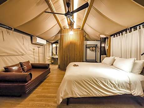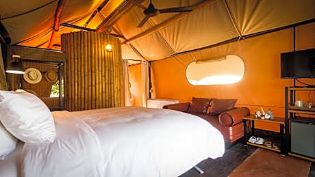Experience an abundance of unparalleled facilities and features at Lala Mukha Tented Resort Khao Yai.Discovering Khao Yai becomes even more accessible through the taxi and car hire amenities provided at the resort. For visitors traveling by automobile, complimentary parking is available.During your stay at this fantastic resort, the attentive front desk personnel can provide you with a range of amenities such as luggage storage and safety deposit boxes. In search of city's top entertainment, seek assistance at the resort's ticket service and tours for reservations. During chilly days and evenings, the resort provides an in-house fireplace to ensure your warmth.For extended visits or whenever required, the dry cleaning service ensures your preferred travel garments remain fresh and accessible.During leisurely days and evenings, on-site amenities such as daily housekeeping enable you to fully enjoy your accommodation.Kindly note that smoking is prohibited in the resort to ensure fresher air for all visitors. For visitors wishing to smoke, designated smoking zones can be found.At Lala Mukha Tented Resort Khao Yai, every guestroom is provided with convenient amenities and fittings to ensure a comfortable stay.Enhance your experience at resort with the knowledge that certain rooms are equipped with linen service and air conditioning for your convenience. A few accommodations within Lala Mukha Tented Resort Khao Yai offer unique design elements such as a balcony or terrace. Certain rooms boast in-room amusement features such as television and cable TV, offering guests an enjoyable stay. In select rooms within the resort, a refrigerator, a coffee or tea maker and mini bar is available to cater to your requirements when desired. It is worth noting that certain guest bathrooms feature a hair dryer, toiletries and bathrobes for your convenience. Begin your day with a scrumptious on-site breakfast available each morning at Lala Mukha Tented Resort Khao Yai. Begin your day feeling refreshed and invigorated as you enjoy a delightful cup of quality coffee available at the cafe situated within the resort.At the resort, an assortment of easily accessible and delicious meal choices are available to satisfy your appetite whenever it strikes. Enjoy an entertaining evening with your fellow travelers at the resort's bar.Do you excel in cooking? Prepare your personal dishes on-site at resort's BBQ facilities and shared kitchen.During your stay at resort, an array of engaging activities and amenities guarantees a delightful experience. Be sure to drop by the pool at resort at least once during your stay.At Lala Mukha Tented Resort Khao Yai, utmost care is taken to ensure guests' comfort. Relish your preferred beverage in your swimwear by the resort's poolside bar.