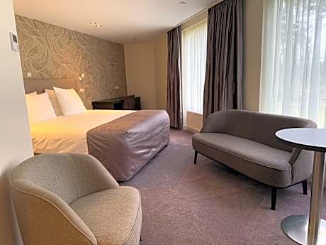 Amid its green estate, this hotel provides romantic rooms, a luxurious wellness - and fitness center. Enjoy the refined restaurant, private wine cellar and cozy lounge bar with fireplace. Landgoed de Rosep offers beautiful private grounds and peaceful surroundings for your relaxing stay in charming Oisterwijk. Wake up each morning with a delicious breakfast buffet and decide to start your day with a stroll through the large garden. The estate’s excellent restaurant serves French cuisine, which can be accompanied by quality wines from the on-site wine cellar. The spacious rooms each offer many comforts, such as a private bathroom with bath. In addition to this, they all provide a great view of the wonderful forested environment. The large wellness center consists of an indoor swimming pool, hot whirlpool, Finnish sauna, bio sauna, infrared sauna and Turkish steam bath. In the beauty center you can reserve massages. You can also play tennis on the hotel’s all-weather court; have a workout in the fitness room; or rent bicycles to explore the wider area.The hotel offers also offers charging points for electric cars and bikes.