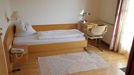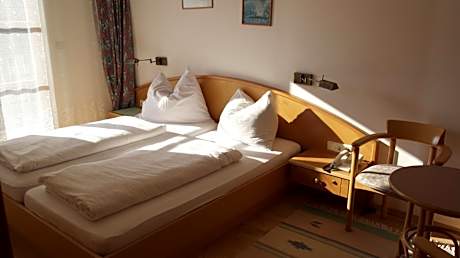 Rustically furnished room with wooden floors, satellite TV, and a bathroom with a hairdryer. Most have a balcony.