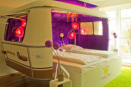 Rooms at Hof Beverland are decorated in a variety of themes, including underwater, Africa and sailboats. All rooms provide a 39-inch flat-screen satellite TV and free landline calls, and guests can use a DVD library.