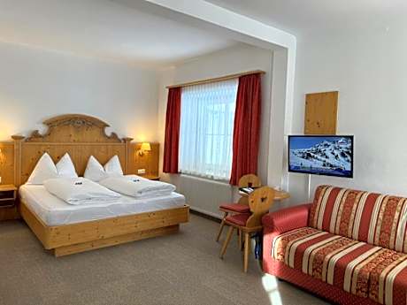 The double room has a double bed, seating area, satellite TV, a safe, bathroom and hairdryer. This room faces the street.