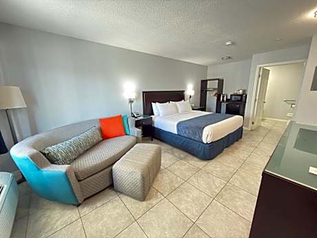 Lantern Inn & Suites is just 15 minutes’ drive from the beach and 2.5 miles from the John and Mable Ringling Museum of Art. Free WiFi is offered and a heated, outdoor pool is on site. A microwave and small refrigerator are featured in each room at Lantern Inn & Suites - Sarasota. A 39-inch flat-screen TV is also included and it features HBO®. Guests can also wash their clothes at the hotel’s launderette. RV and truck parking is also available for added convenience. The hotel includes a full bar. This hotel is1.5 miles from the University of South Florida Manatee. The Sarasota Bradenton International Airport is just 3 miles away.